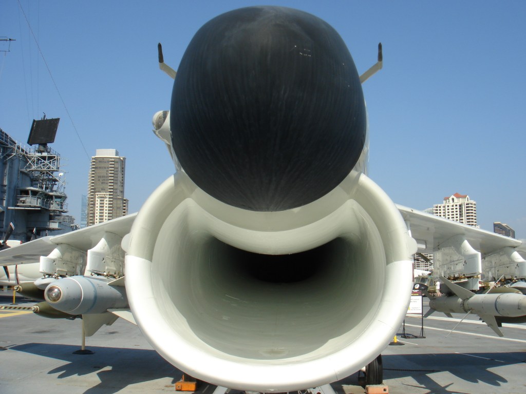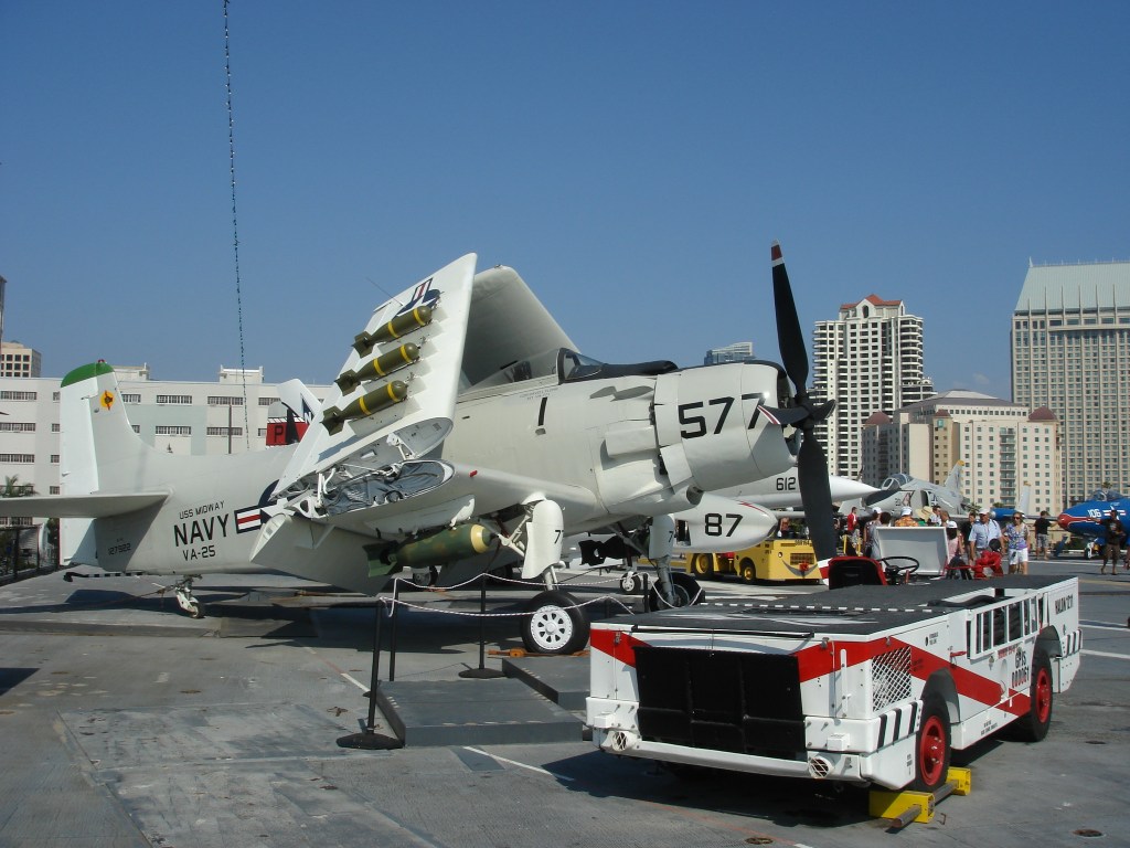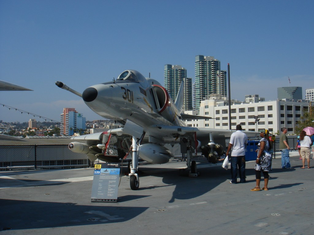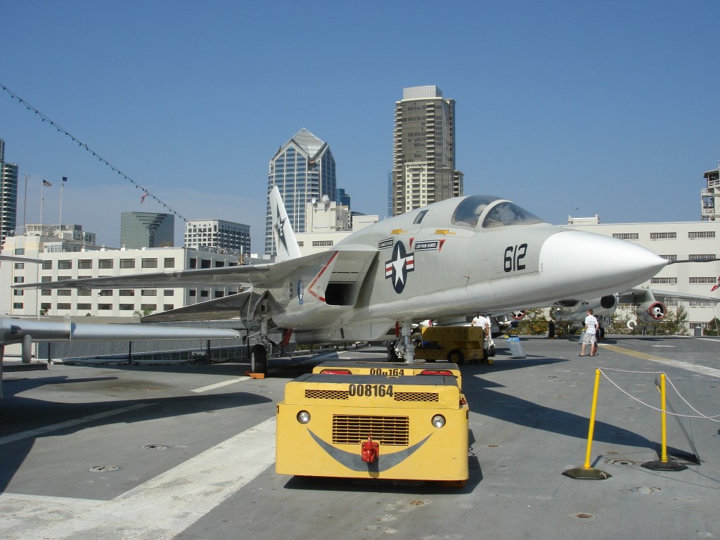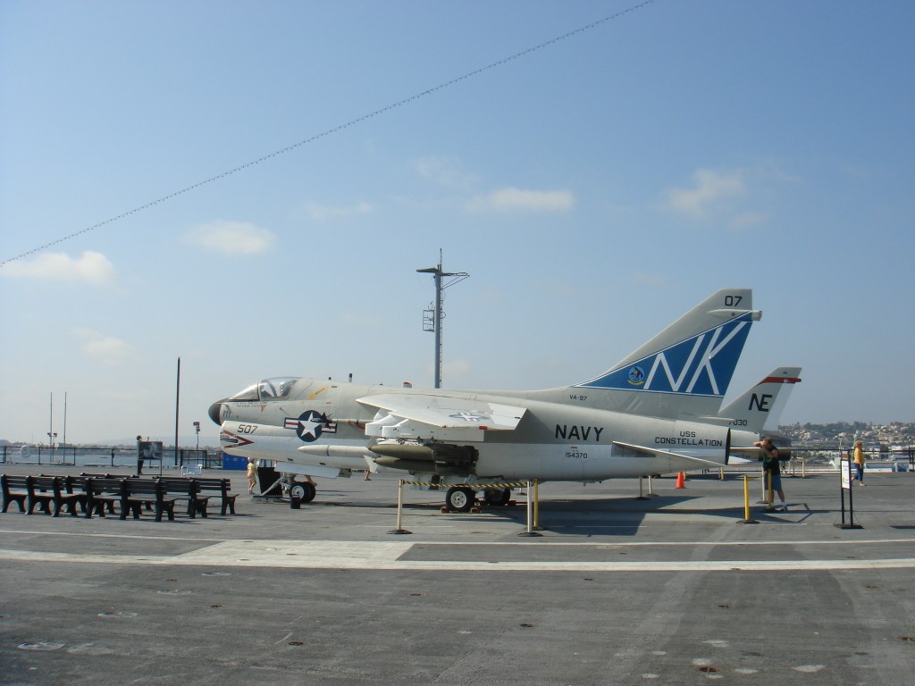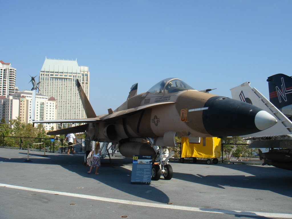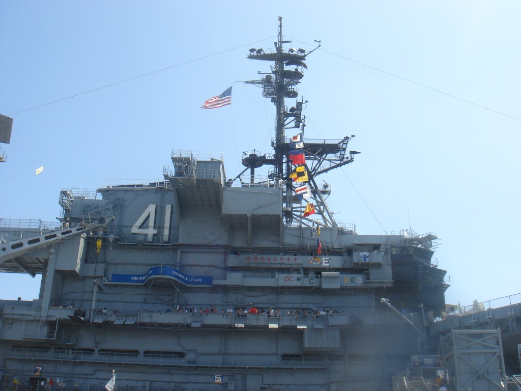 登舰参观位于圣地亚哥的中途岛号航母,此处弥漫着七十年代嬉皮士的气息。棕榈树、海鸥、摇滚音乐、还有岸边飘来的薯条三明治的香味。中途岛服役年代,正值航母大行其道之时。日寇已平,美帝海军天下无敌。航母编队穿梭于五洋四洲犹如无人之境。虽然有了众多核动力航母,中途岛号却修修补补用了半个世纪,以至于和建造之时相比面目全非。航母同时还是飞机博物馆 – 从二战到湾战时期的舰载机一览无遗。