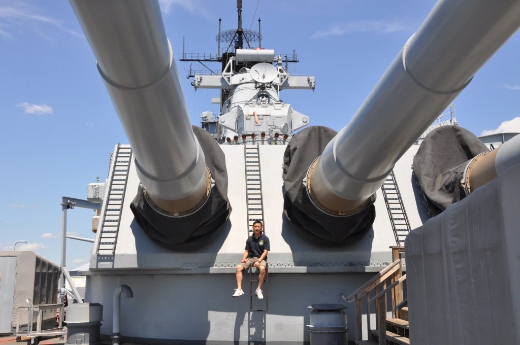 在美东旅游期间,有幸一睹现存最大战舰,史上仅次于大和舰的庞然大物。新泽西号生不逢时,功勋都让前辈得去,船坚炮利无用武之地。好在海湾战争爆发,披挂上密集阵、捕鲸叉和战斧,半个世纪后再得建功立业的机会,除了神奇的”戈本“号之外实在是不多了。