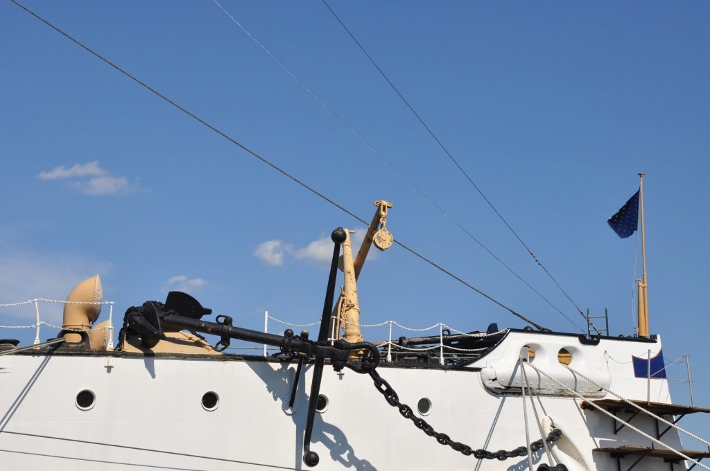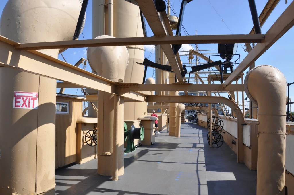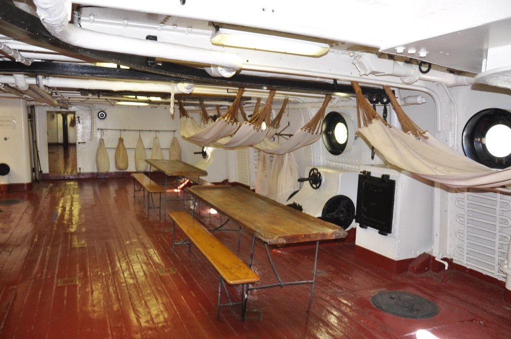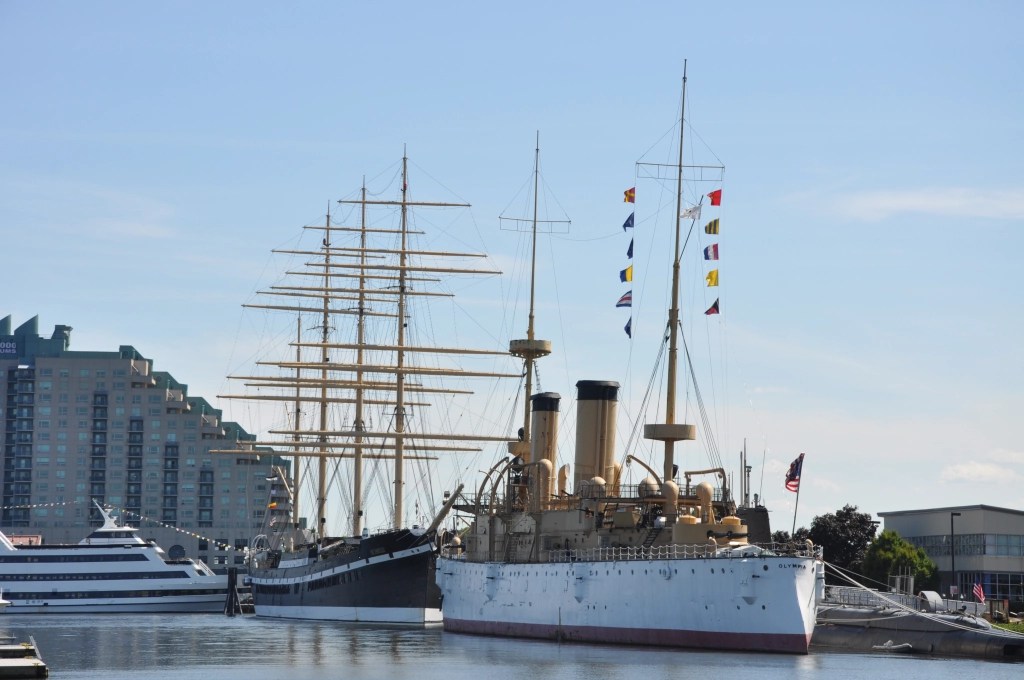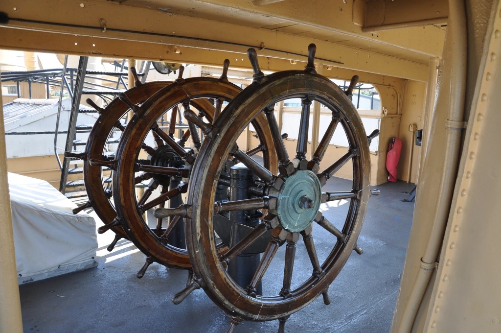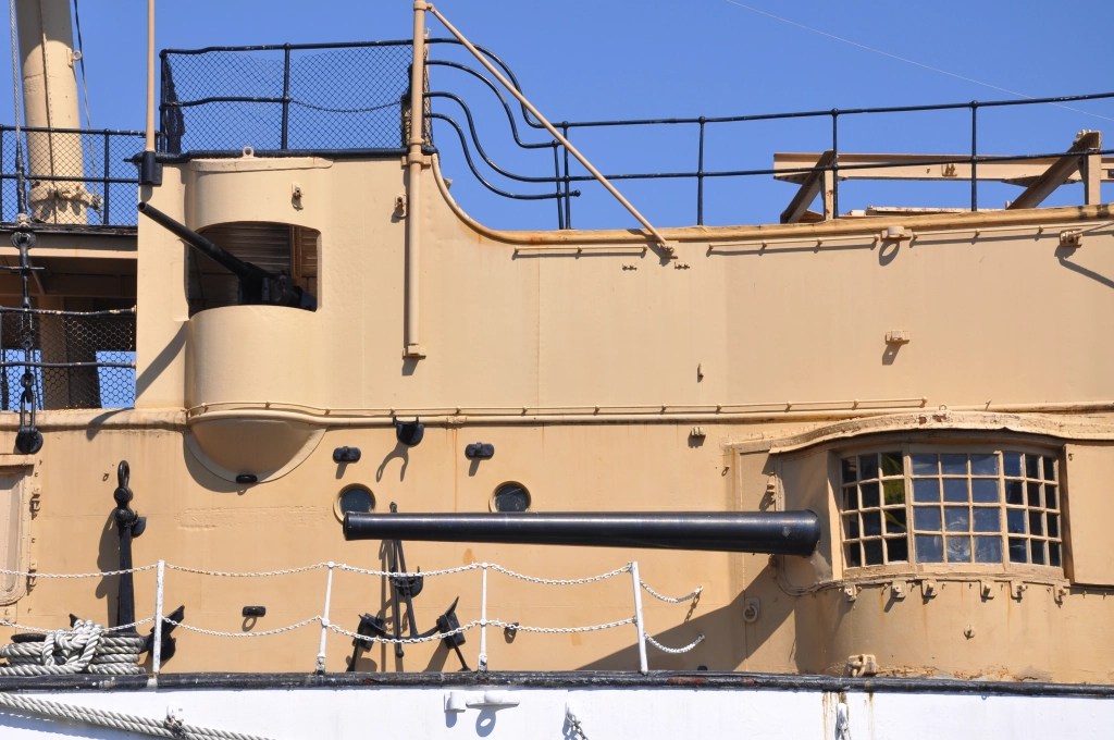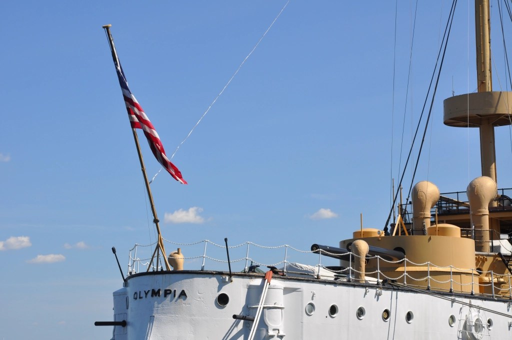 和新泽西停泊在一起的,有一艘貌不惊人的铁甲舰。其历史却不容小觑 – 当年美帝海权方兴,和日落帝国西班牙争夺菲律宾时,此舰作为杜威的旗舰立下汉马功勋。以至于后来显赫一时的大白舰队,只留下了这形单影只的一艘,其余都送去回炉了。装甲巡洋舰在当时因速射炮而正值大放异彩,甚至有认为对马海战起决定因素的正式八艘装巡。