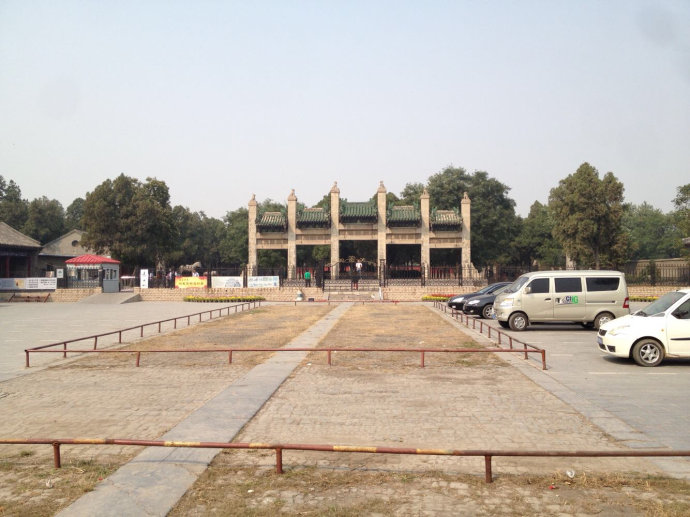 过了黄河,古迹明显少了。黄河南岸第一停,是“花园口扒堤处”。扒堤坝之后千里泽国的惨状,早就写入教科书了。可扒堤到底该不该,众说纷纭;不扒堤还能怎样,却无人能答。但有一点,蒋公是说话算数的。抗战军兴,群情激愤是,蒋曾言道:“一旦军兴,地不分东西南北,人不分男女老少,都要抱定必死决心。”,看来说的便是此地此时。