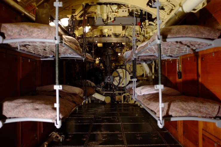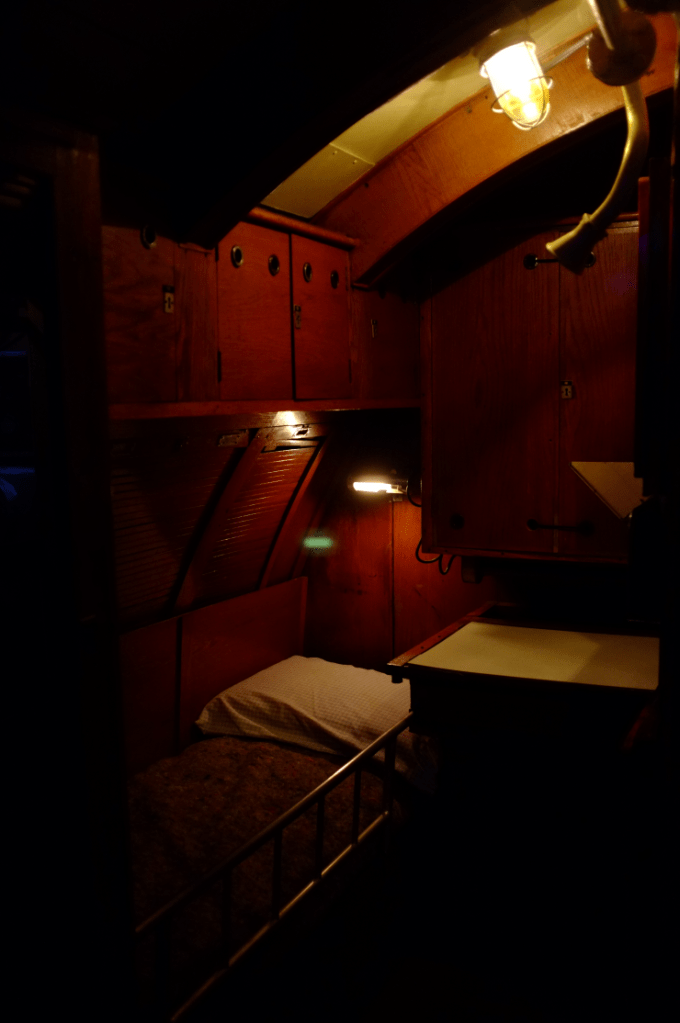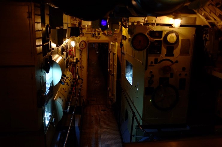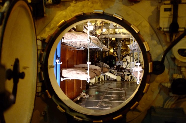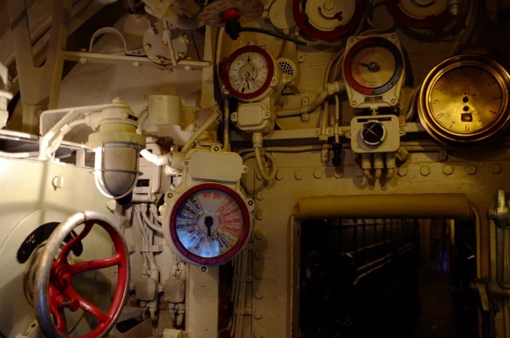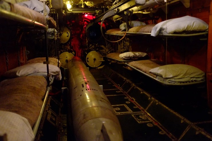相较之前参观过多次的美国二战潜艇,德艇尺寸更小,艇员生活工作空间远比美艇局促。最有看头的,是两个巨大的燃油引擎,一如德国电影《Das Boot》中所现。