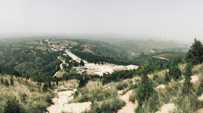 昭陵“因山为陵”,开车沿盘山路而上,经过陪葬的功臣墓群,最终停在了祭祀广场除。往下看,是宽阔的神道通往山下关中平原。