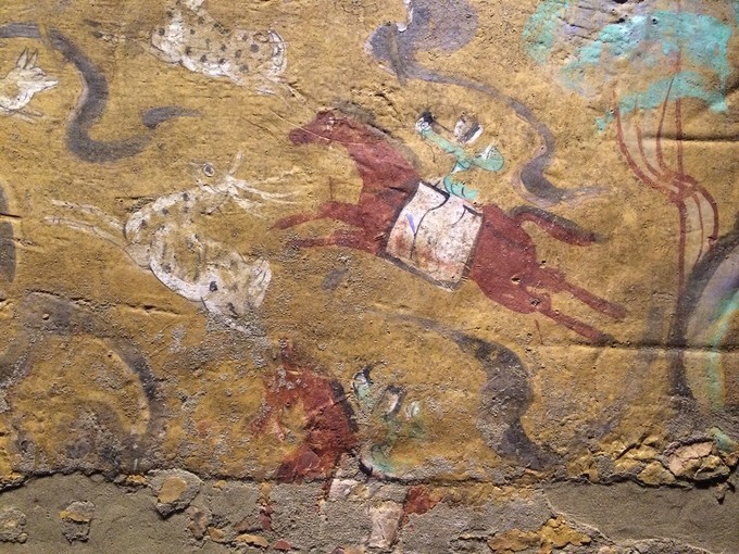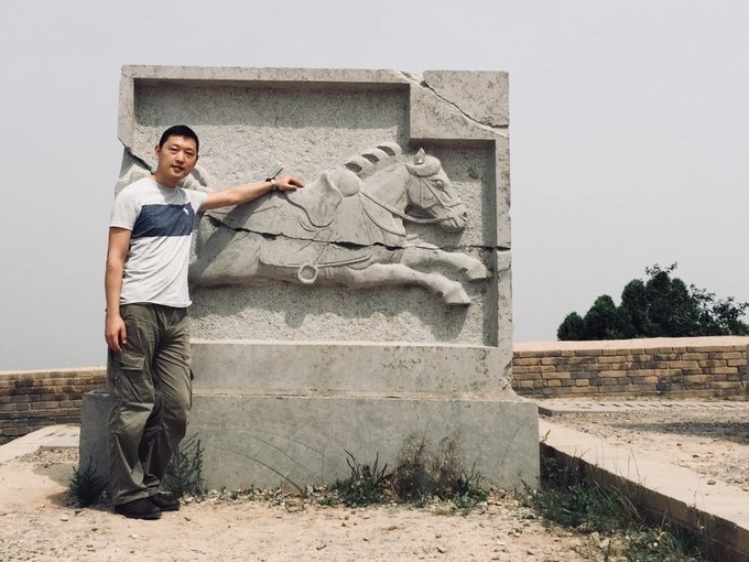 除此之外,昭陵空空旷旷。只有膺品的昭陵六骏突兀地陈设着。这匹是青骓,复刻的做工仿佛很粗糙,下回要去碑林一睹真迹。