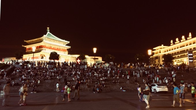 吃完饭出来,随着鼓楼的茫茫人潮,随波逐流就当消食了。四海游客和纳凉的市民汇成的人山人海。城门广场上,大型的声光表演正在进行。弘扬中华帝国的沙文主义旋律,结合上时髦的X带X路元素,噪音犹如雷电般震彻云霄,徒劳地干扰着世界的主旋律。
