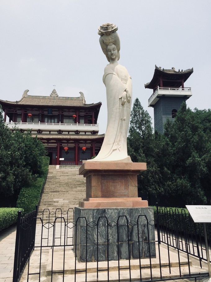 在当年杨贵妃罹难之处,现今是贵妃墓纪念馆。雕像深情呆滞,如此神情气质,恐难叫君王“三千宠爱在一身”。展馆内的主题,数唐代妇女风采。唐代的贵妇,时常彪悍霸道。唐代的公主,是特别愁嫁的。如今这里也颇有人气,前几年参观的玄宗泰陵,怎么荒芜了得。院子最后是贵妃墓冢,或说衣冠冢。但愿正如记载,玄宗回京后将贵妃遗骸迁出,合葬于泰陵,终偿“漫道无逢会有逢”之愿。