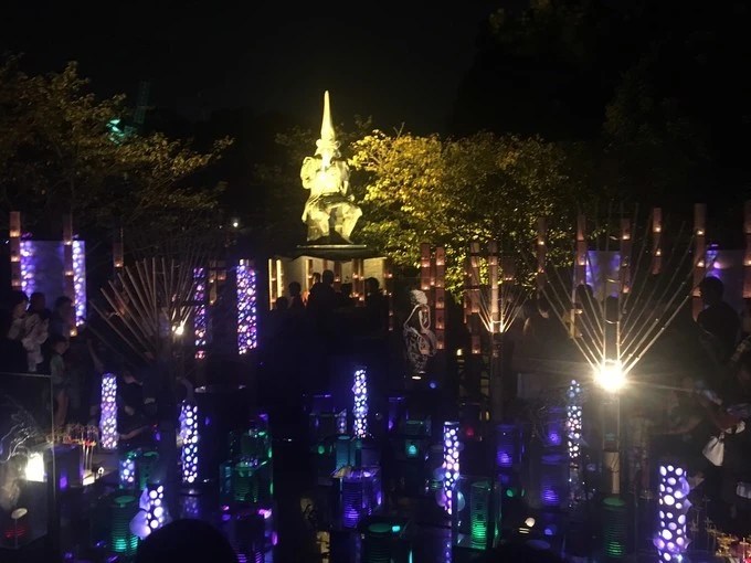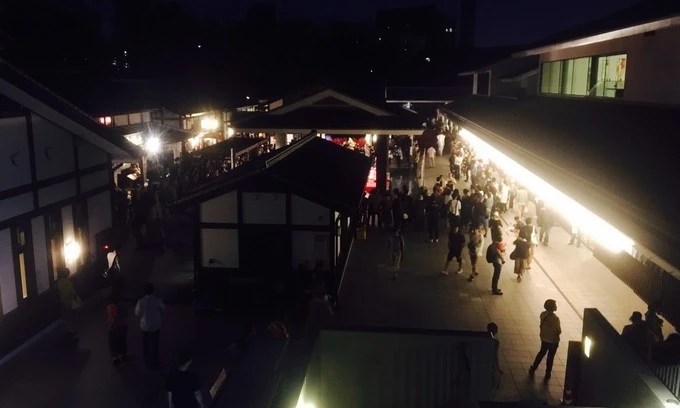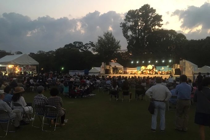 整个十月,熊本有大量的传统活动。当天晚上,草坪上上演着太鼓比赛。太鼓中常伴随笛声,很有当年军旅的感觉。