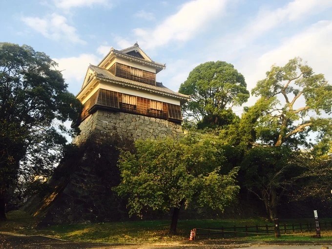 预先知道熊本城不能参观,因此只预留了多半天的参观时间。在车站附近酒店办理入住之后就来到了熊本城。