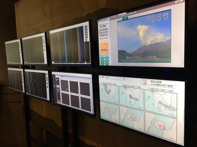 登上樱岛,瞎逛来到一个火山博物馆。地方超级小,却认真地介绍了火山原理和樱岛历史。樱岛原本是锦江湾的一个岛屿,在1914年的一次大喷发后与始东部陆地连接称为半岛。樱岛每年常爆发上百成千次。2017年却活动陡降。博物馆用大屏幕记载其活动趋势。