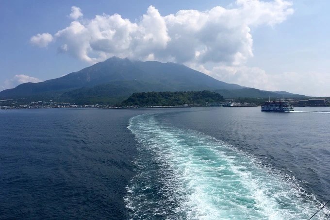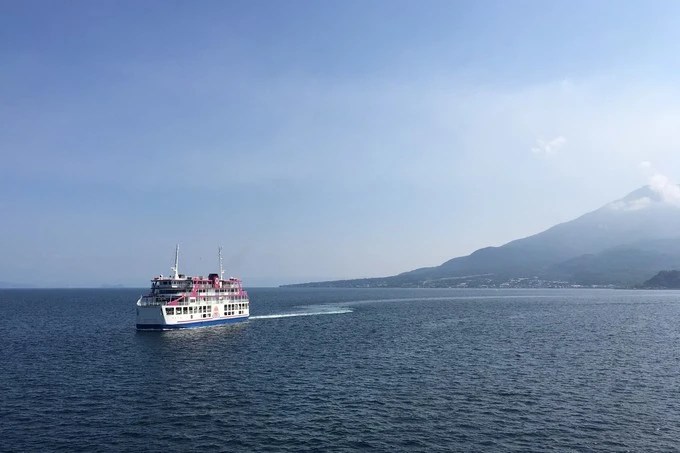 鹿儿岛最后一天,坐渡轮去樱岛逛一逛。渡轮是人车两用的大船,车多人少,顶层的露台和宽敞。航行只十五分钟时间。