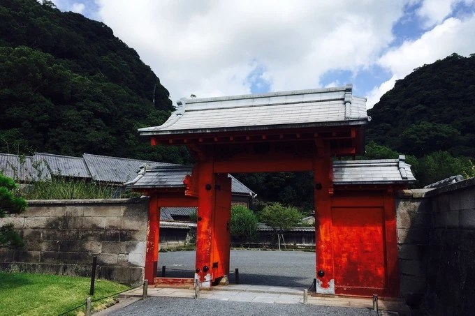 御所的大门漆高贵的朱红,并用贵重的锡包裹彰显尊贵。