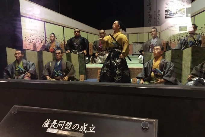 集成馆是开明藩主的舞台,维新博物馆展示的已经是年轻武士们的伸手了。博物馆看了近三十分钟的机器人舞台剧,重温了倒幕运动的关键场景:萨长同盟、小御所会议、大政奉还。