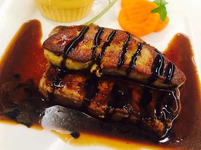 我选了一份菲力鹅肝。鹅肝很新鲜,配上黑醋调料;牛排也很嫩。只可惜切的有些薄,吃不出三分熟的生味来。日本的牛扒店都有点米饭,和牛肉搭配很完美,原胜过面包土豆。