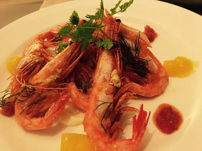 Oyster Bar中点了一份甜虾。原以为是刺身,没想到是烤熟的,意大利风味。烤熟的甜虾竟这么好吃。不光虾肉,虾籽、虾头和虾壳都是甜的,用手拨着就全吃完了。