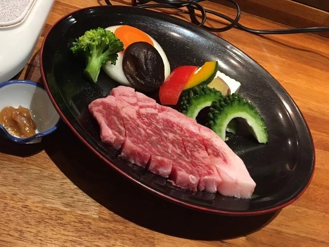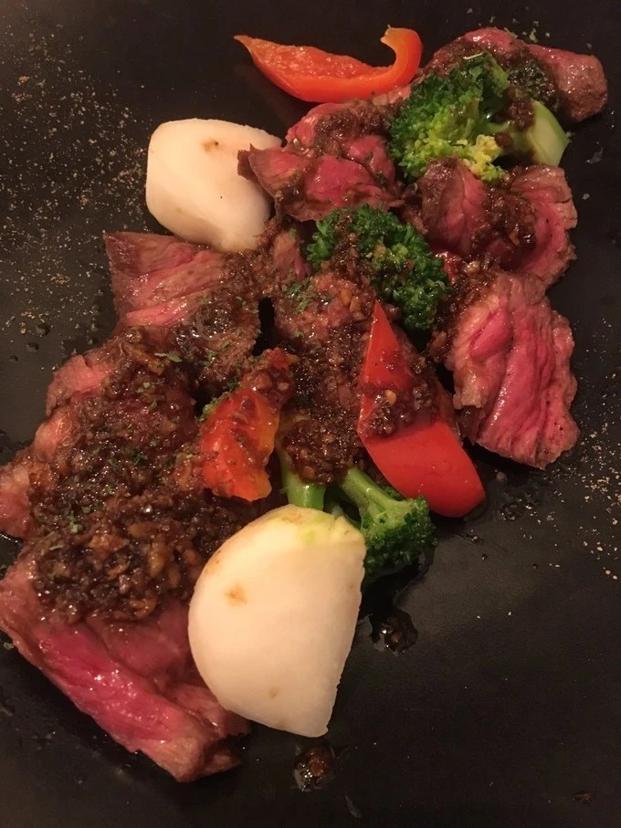 lp点的则是长崎和牛烧烤。和牛(wagu)是日本本土的牛,以神户为最,近江、长崎也有不错的品种。好的和牛肉,一定要烤得带生才能吃出浓郁的香味。之前吃过很多部位,我最喜欢西冷
