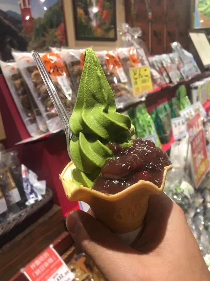 吃完烤肉,来份带红豆沙的抹茶冰激凌消消食。