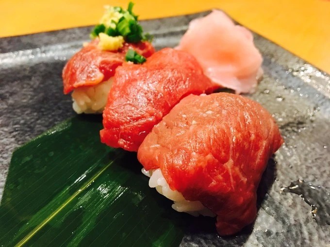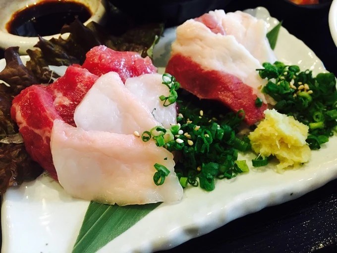 马肉是熊本的特色,吃马肉也算支援熊本城重建了。马肉多生吃,这份是三种口味。全瘦和肥瘦相间还有全肥。说不上好吃也不难吃,但不必担心想象中的膻味。有点费嚼而已。