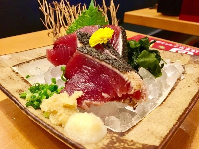 烤鲣鱼是坂本龙马的最爱,所以龙马迷有机会都会吃一口。在此之前吃到的烤鲣鱼都略带酸味,而在这里第一次吃到味道无比纯正的鲣鱼。鲣鱼是一种小金枪鱼,价格很便宜。吃的时候不必像吃toro般小心谨慎,大可以大快朵颐,很过瘾。