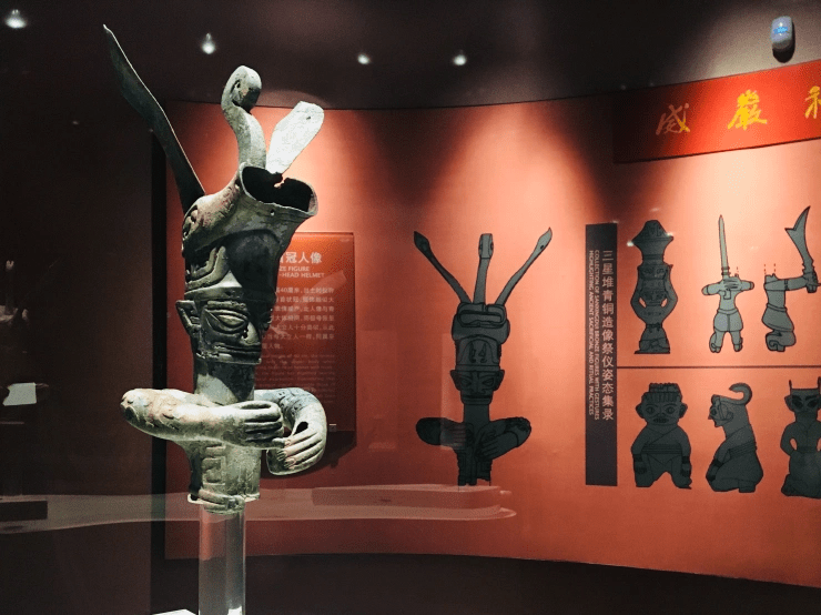从这具半生像头戴的动物装饰看来,这些铜像应为行祭之人,而非所祭之神。