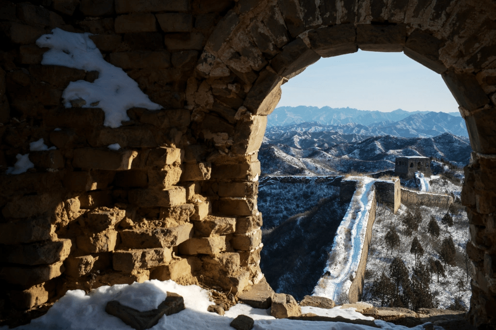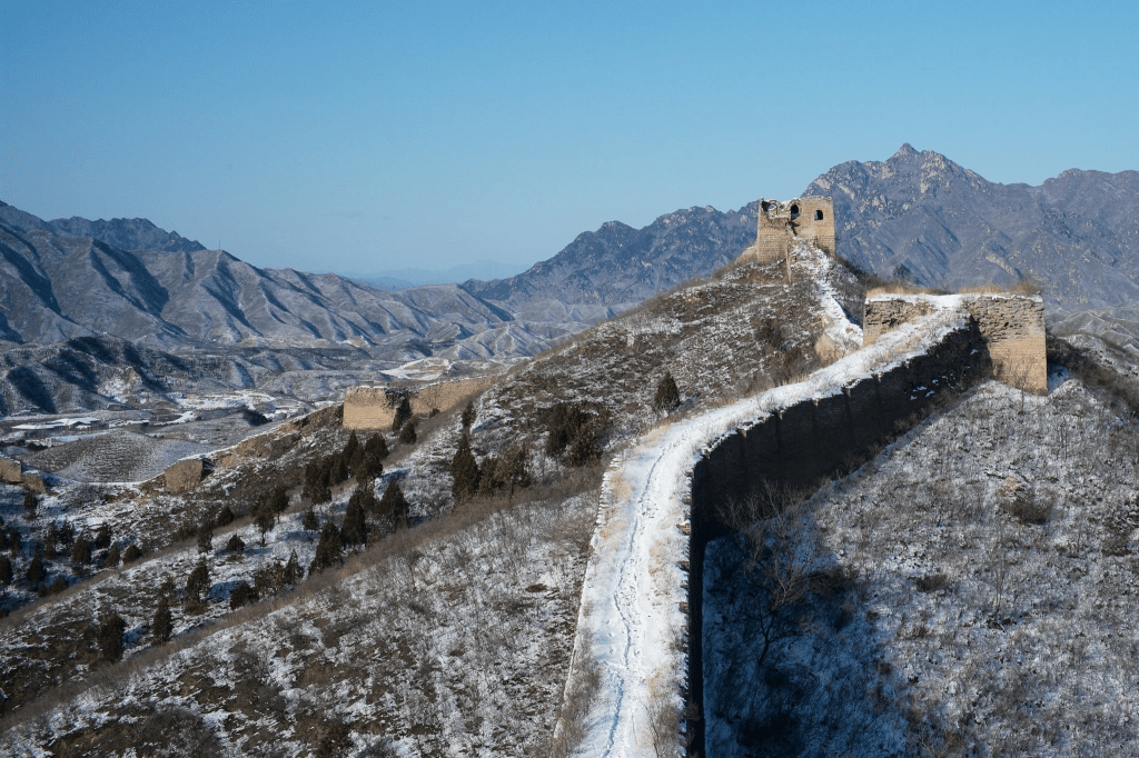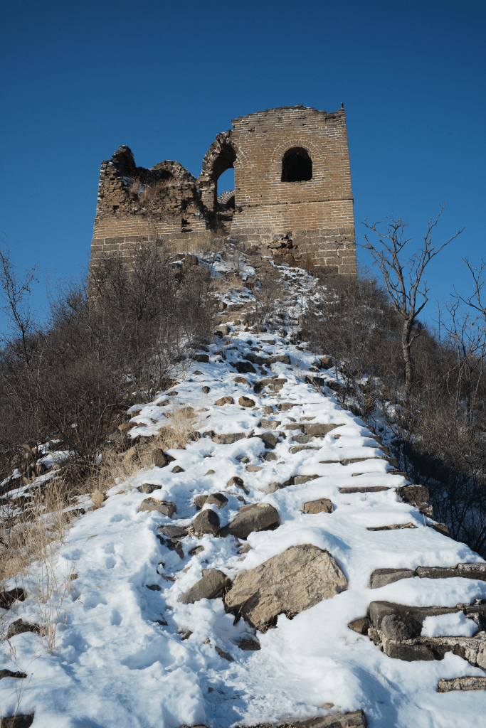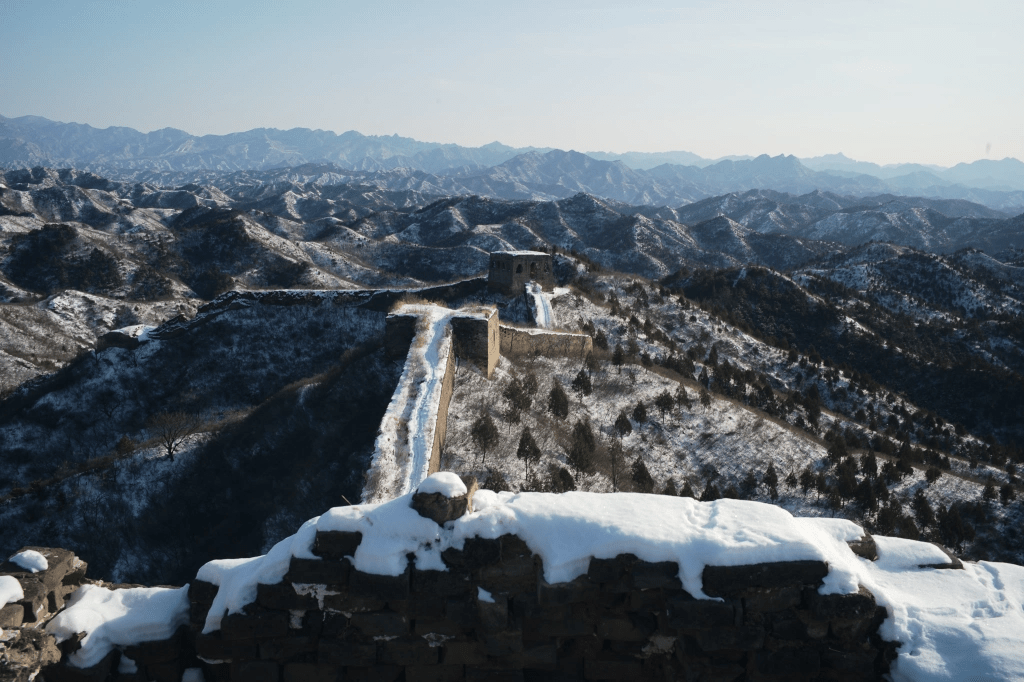 后记:北京周边诸长城,数古北口段最为野旷,故夏日登临后,冬日又至。而大雪中所见,墙外山峦起伏,皆披白雪,掐似海浪,此莫非唐太宗诗中“瀚海百重波”之所谓?隋炀帝、唐太宗皆仿作《饮马长城窟》,然虚张声势,言辞琐碎,风骨平平。唯唐太宗诗中“阴山千里雪,瀚海百重波“一句印象颇深。是日得见此景方悟其所谓。