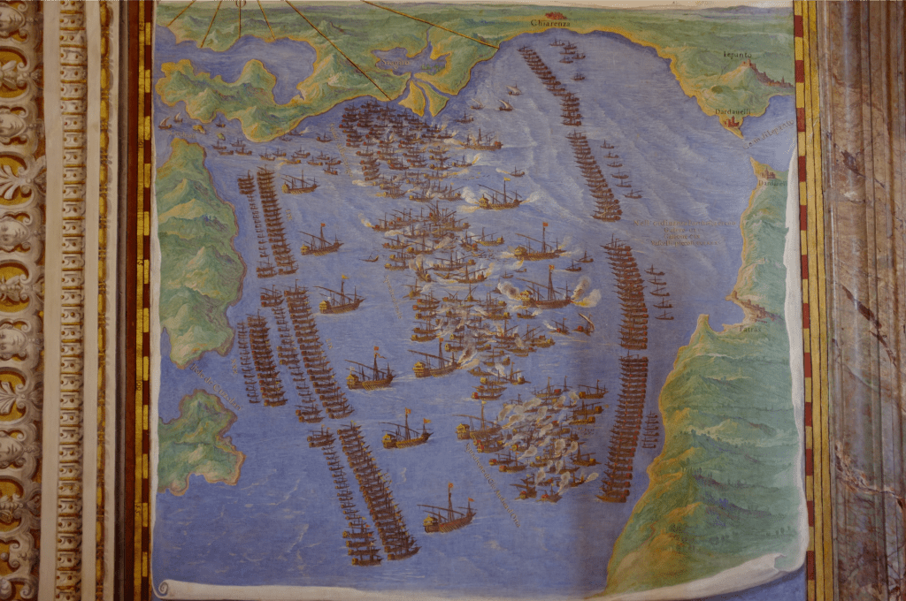 1571年的勒班陀战役,似的基督教世界得以摆脱君士坦丁堡沦陷后,来自奥斯曼的虎视狼顾。此役,由教宗纠集基督教十国联军中,威尼斯独占半数战船,更贡献六艘功勋卓著的巨型桨帆船,一马当先冲破敌阵,由此奠定胜局。
