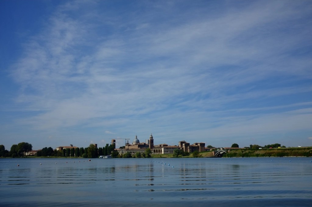 如今,这里却变成了人间胜景。Mincio河水与天空湛蓝呼应,水平线上的曼图亚犹如迪斯尼般美丽。虽然棱堡已经消失,却被绿地取代。从河对岸看去,有种生机勃勃的感觉。