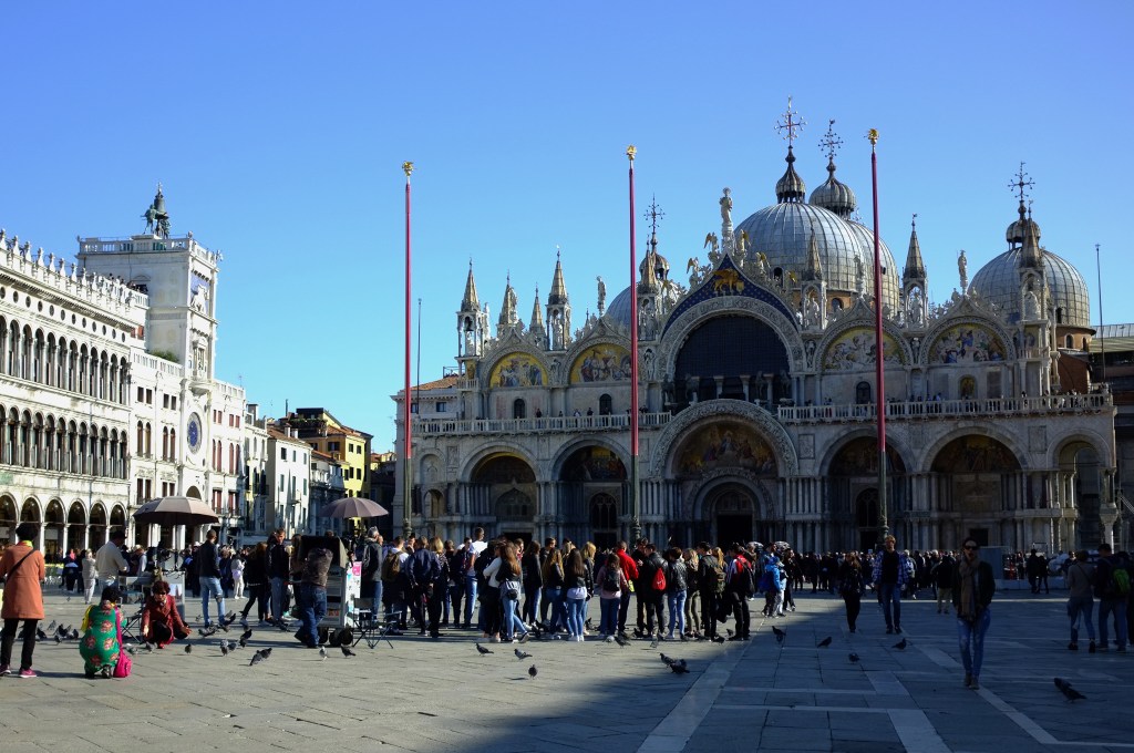 拜文艺复兴之赐而成为最美丽城市的,一是佛罗伦萨,二是威尼斯。而这两个城市之美,确是鲜明对立的。与佛罗伦萨精于艺术和谐之美迥异,威尼斯之美嘈杂而世俗 – 哥特的尖顶、罗马的柱廊、君士坦丁堡的“洋葱头”、相映成辉。唯一的共同点,是金碧辉煌。七百年前的马可波罗所述“遍地是黄金”的东方从未发现,倒是他的家乡如今当得上这个形容,至少在圣马可广场上如是。