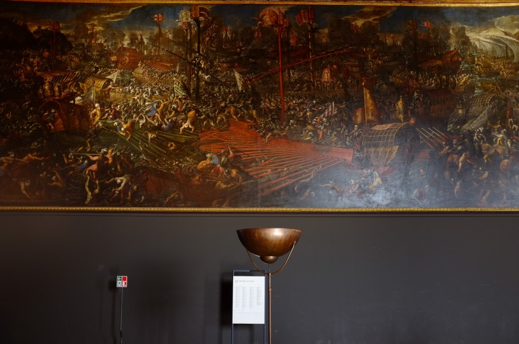 来到曼图亚的动机,战场还是其次,主要为了城中Te宫殿里罗曼尼的一间房间而来。罗曼尼师从于画圣拉斐尔,在梵蒂冈博物馆有师徒合作祭坛画一幅。在拉斐尔完美写实的标杆上,罗曼尼发挥成更夸张、更富感染力的矫饰主义,因此特来一瞻。