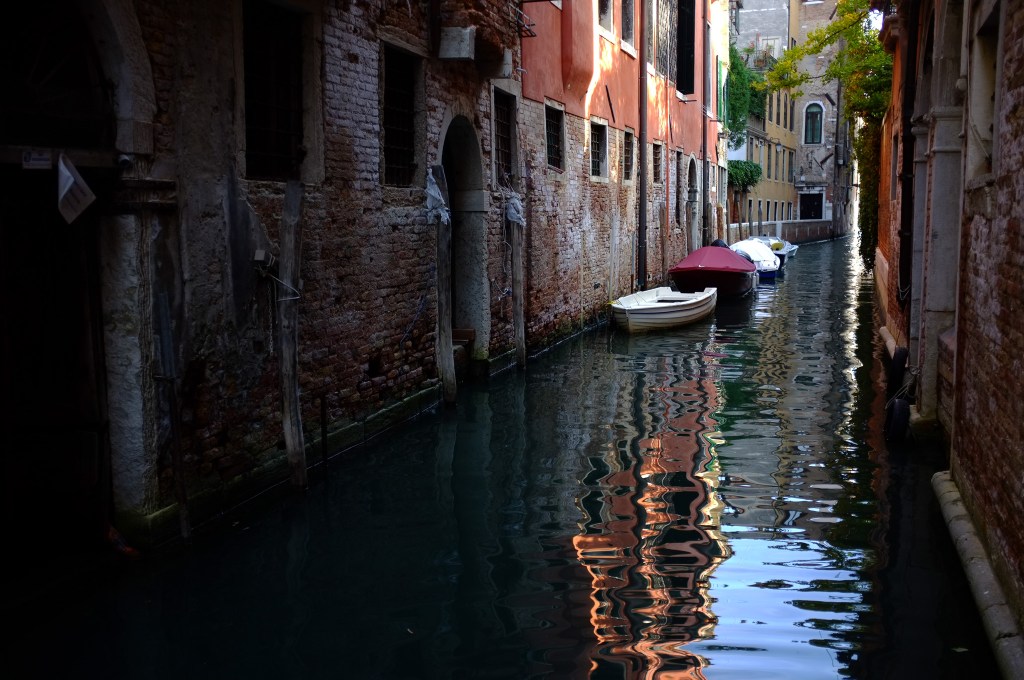 光鲜的圣马可广场、大运河两岸的官邸、金碧辉煌的教堂之外,威尼斯也有惨淡的另一侧面。离开运河稍远,不少河道中散发着淤泥的气味,建筑的外墙,也年久失修,似乎早已被遗弃。更有甚者,有些大楼,其一楼已经下沉到水中。威尼斯原为泻湖区域的沼泽,其上的楼房广场全靠夯实的木桩支撑。从技术角度讲,威尼斯从建成之际就注定将不断下沉 – 无论有没有游客存在。如今,为保留世界最美的城市,市政府不得不挨段抽干河道,修正地基,长期对抗下沉之力。