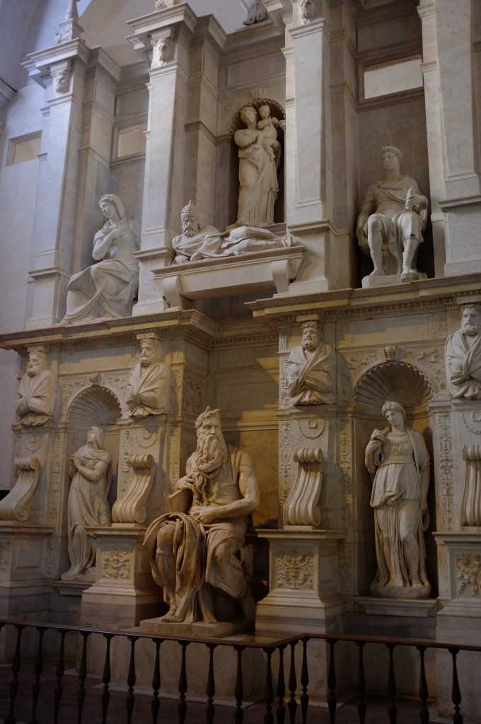 儒略二世出名的,是其对艺术的极大热忱。没有他,也不会有西斯廷天顶画和末日审判、拉斐尔的四个画室、还有摩西雕像。所幸者这次都看全了。摩西雕像是为儒略二世陵墓所作,位于一座不起眼的小教堂中,计划中是巨大雕塑群的一部分。直到教宗去世米氏也迟迟不肯完工,最后索性耍赖称没有收到钱款而缩水到一尊雕像(好在BBC经过考证米氏的账本为教皇洗冤)。