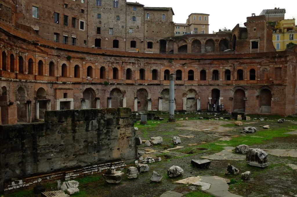 冒着飘忽不定的阵雨,从竞技场沿着罗马广场废墟前往国家祭坛,途中经过图拉真纪功柱。图拉真皇帝(Trajan)任期内征服多瑙河地区的达契亚,将帝国疆域扩大到极限。图拉真由养子继承皇位,其后亦由其养子哈德良(Hadrianus)继承。