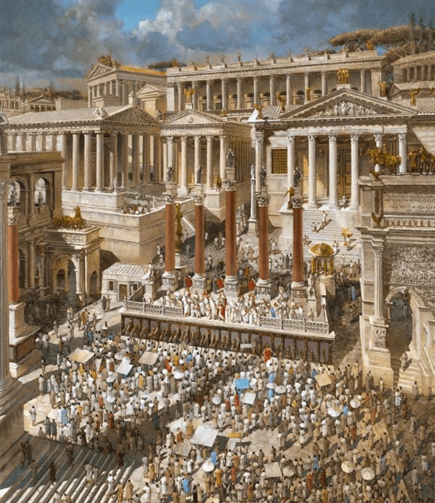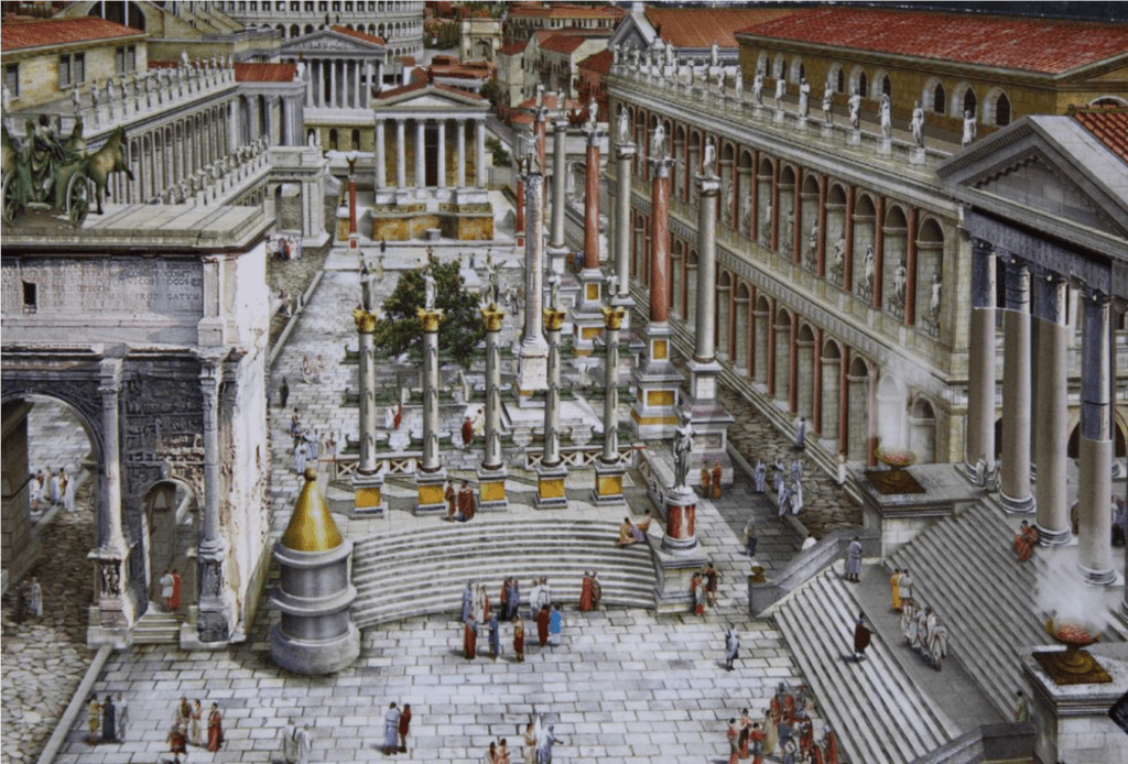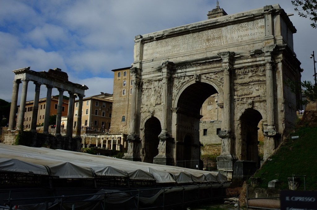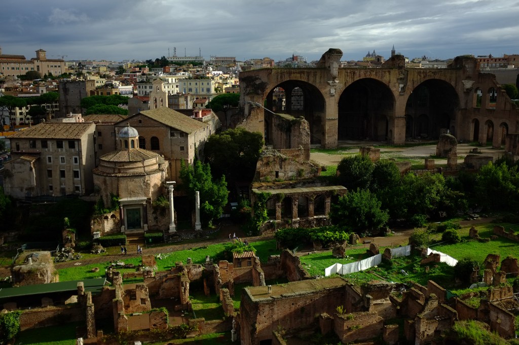 罗马城的市中心,竟是一片废墟!两千七百年前的罗慕路斯兄弟,选中了台伯河畔七座低矮的山丘中作为新的居所。选择山丘作为城市,是为了防御当地土著伊特鲁伊亚人的攻击,但随着罗马的逐渐征服周边,城市也逐渐扩展到山坡下的平地。其中位于七座山丘之间的一大块开阔地,原来曾是用来埋葬死人的沼泽,后来便成城市的中心 – 罗马广场(Forum)。由于原本地势低洼,又经过上千年的地质沉降,Forum受到天然的保护,如今重见天日,对照古罗马作家详尽的记载,竟能完全复原其原貌。