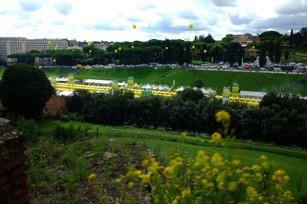 初到罗马的星期天,雨下个不停。虽然在佛罗伦萨和威尼斯见识过游客大潮的阵势,但看到Colosseum大竞技场外排队的阵势,仍感震惊。Colosseum所在的下沉广场中,下饺子一般挤满了人,有的打伞有的披雨衣,色彩斑斓张力十足。雨下大的时候,人群会稍稍散开,聚拢到有遮挡之处。雨一收敛,人群又迅速填满到空地中。