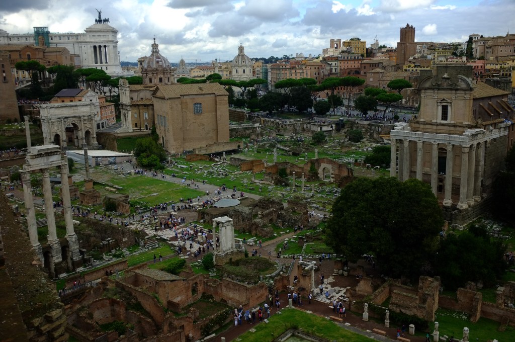 罗马从两千七百年前建立起,先后经历罗马帝国和基督盛世。但也曾有过散淡经营的时期,多次被蛮族、雇佣兵、甚至被教皇钦封的神圣罗马帝国皇帝攻陷。公元1350年,罗马彻底沦为悲惨世界 – 教皇迁徙至法国,城市仅靠黑社会维持,硕大罗马城内止剩一万居民。经儒略二世、里奥十世、乌班八世等有为教宗主持恢复后,才有了今日的胜景。略有遗憾的是,教宗为了大兴土木而不惜毁坏古罗马建筑,于是有了古罗马广场的破败景象。