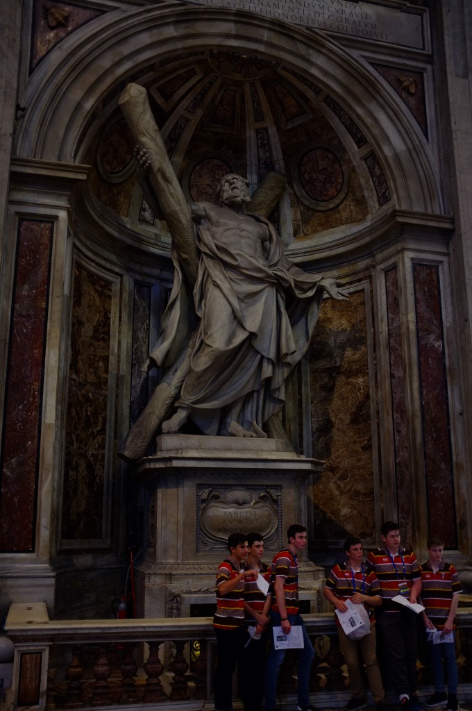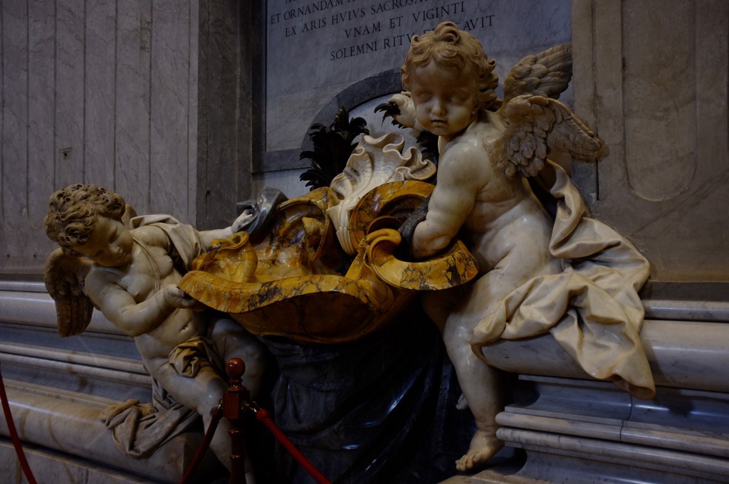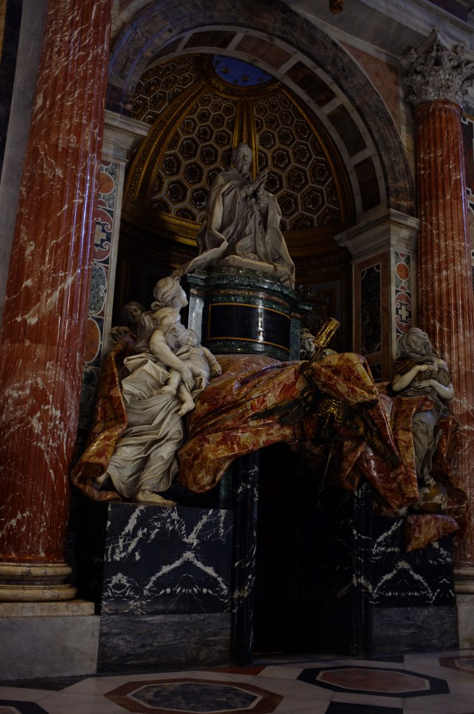 古典主义的形体雕塑在多纳泰罗和米开朗基罗笔刀下已完美到无以复加的程度,而贝尼尼则在通过为人体附上美轮美奂的修饰,生动的神情刻画,遂发展出巴洛克雕塑风格。和作画的卡拉瓦乔异曲同工,一幅幅画作、一尊尊雕像,由此演变成一出出戏剧。贝尼尼的雕塑在罗马最多,可惜未得时间一一寻访。其最出名的《狂喜的特蕾莎修女》也未得一见,不啻是达芬奇《最后晚餐》之外最大的遗憾了。圣彼得大教堂中的众多雕像,多仿其风格而建。
