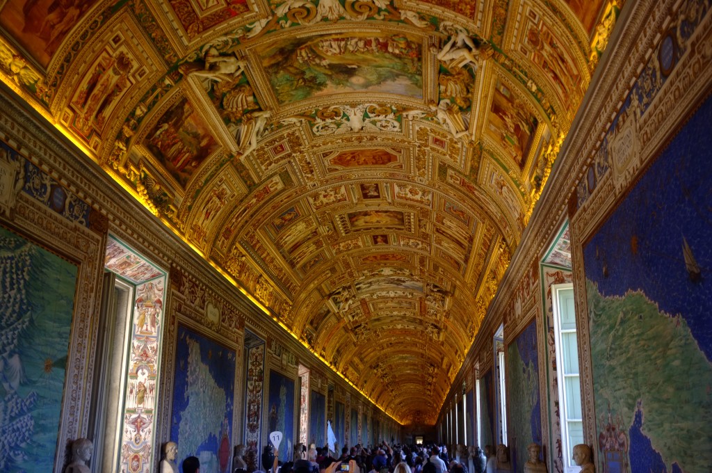 匆匆看完圣彼得大教堂,便赶到梵蒂冈博物馆参观。排队等入的人群,几乎围绕梵蒂冈半圈之多。信号提前预定了入场时间,可以不用排队直接进入。在博物馆中,却发现几乎没有空旷之处,处处挤满游客。于是只能强忍着闷浑的空气,顺着人群缓缓流动。先参观的画廊多是洛可可风格画作,希腊罗马的雕塑却不得不驻足细看。
