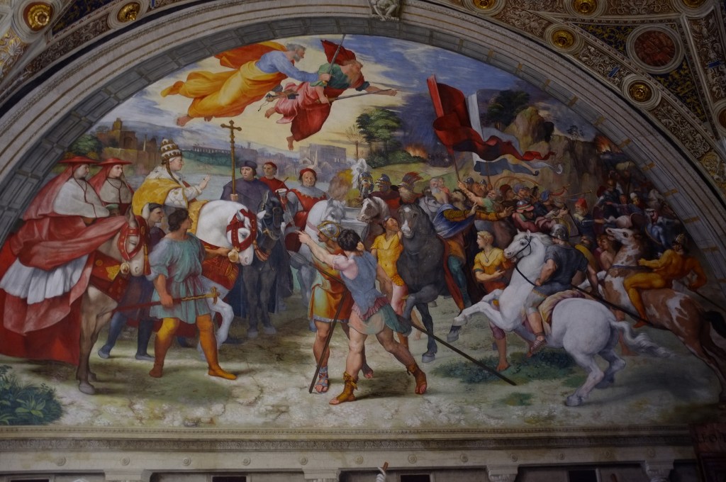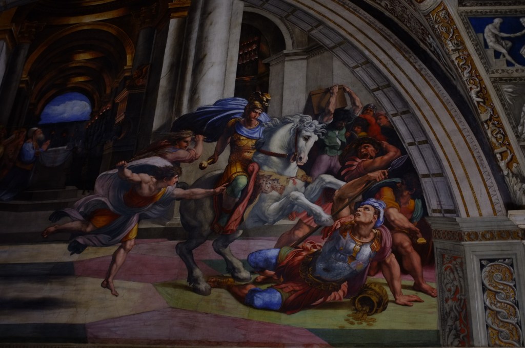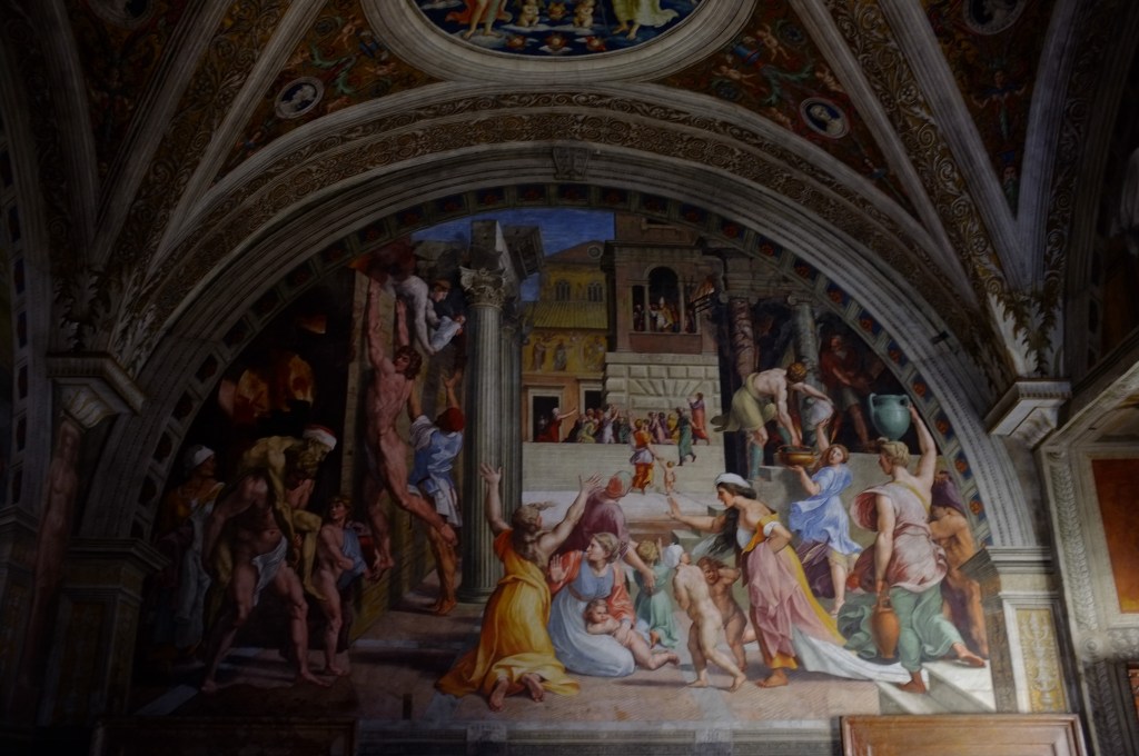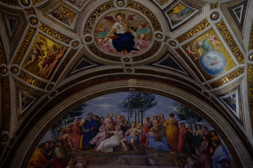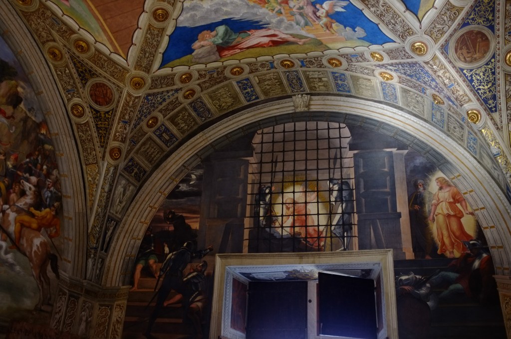 西斯廷小教堂是梵蒂冈博物馆的最后一站,也是整个旅行的最后一个景点。凡参观梵蒂冈的芸芸众人,无不是冲着著名的天顶画而去,不少便走捷径而错过了拉斐尔的“四个房间”。四个房间为教皇的办公室,其中三个由拉斐尔亲自绘制壁画,其余一间在拉斐尔逝世后由其门人完成。西斯廷天顶画从地面看去相隔甚远,许多细节看不真切,而这四个房间中国却可以零距离观看画作的每一细节,也没有不准摄像的限制。