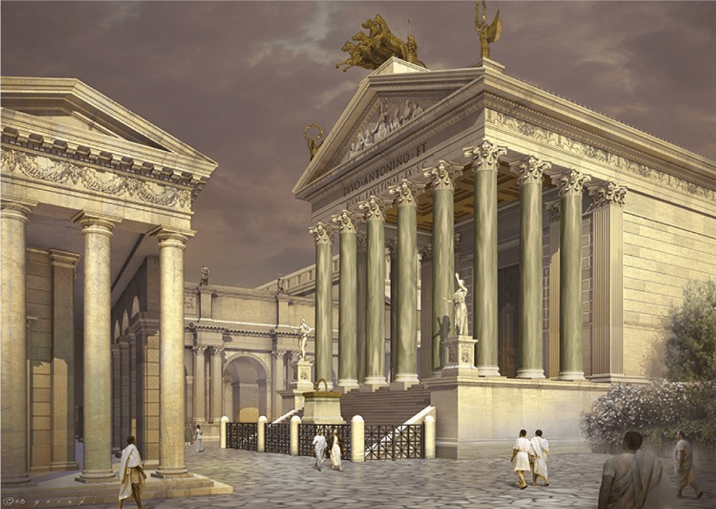 由凯撒下令建造,命名为Curia Julia的新元老院,是Forum中保存最完好的建筑之一,得益于中世纪时曾被改造成教堂。即便如此,被剥去了大理石外墙,拆去了大理石柱廊,加盖了穹顶之后,元老院的感觉已经荡然无存了。Froum的大理石多被教宗用去修建罗马别处的基督教建筑,尤其是新圣彼得大教堂。