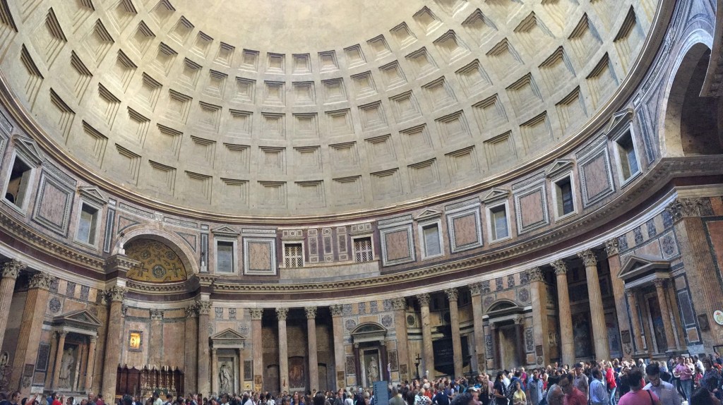 头一天冒雨参观了竞技场、米氏巨作摩西雕像、大竞技场、国家祭坛,今日游览罗马Forum和万神殿。至此除梵蒂冈外,计划内的事项均已一一勾住。出发前准备的厚厚一沓在线门票、预约,逐日便薄,此时终于只剩下梵蒂冈博物馆一页。十数天的行程,为安排得严丝合,缝滴水不漏,无时不刻不存焦虑。每天早早背包出发,夜间还要温习功课兼预习次日景点概要,仿佛回到高中上学之时。直到此时才顿释轻松下来。罗马上有许多必看之处 – 博物馆中贝利尼的雕塑、遍布各处的教堂和罗马神庙、引水渠、古城墙。。。这些都等下次再看了。眼下当务,是抓紧最后半天时间享受片刻假日的感觉。