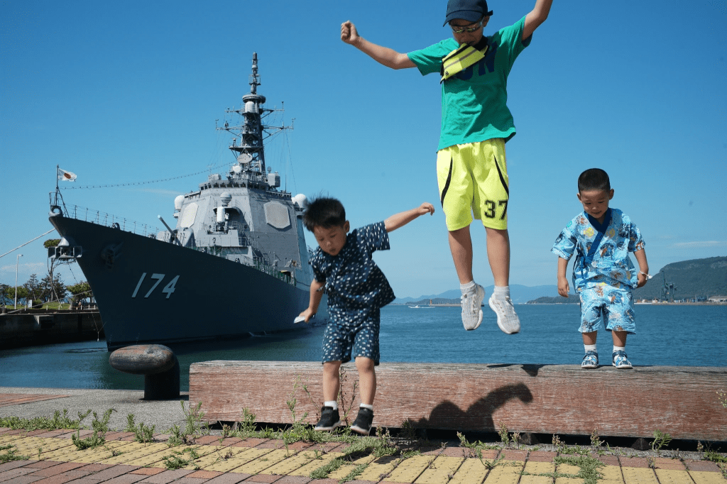 退役的军舰看过不少了,但第一次零距离观看现役军舰,真是兴奋啊。前一天路过高松港的时候还是空荡荡的,次日忽然看见高耸的天线。赶紧三步并作两部赶往前去。