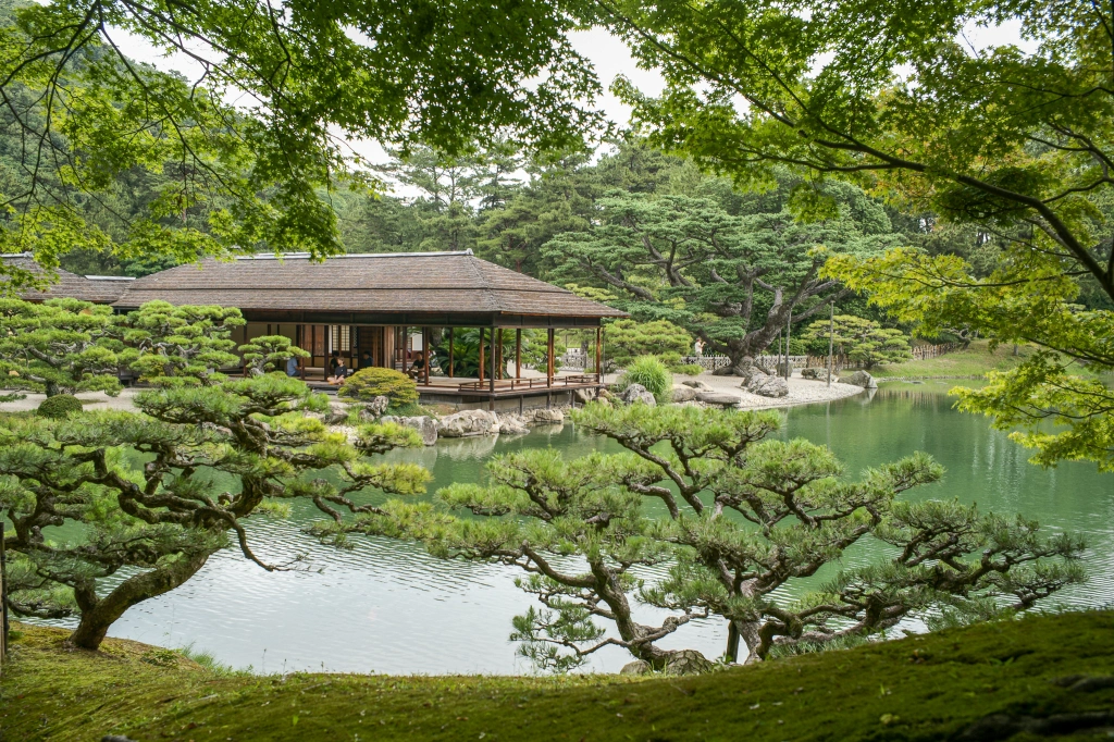 栗林公园在所有香川景点中排第一,更有米其林三星园林之称号。不同于多数日本园林的局促,栗林园其占地极大,背屏山丘,峭壁飞挂瀑布。园内遍载松树,姿态无不婀娜至极。王摩诘的辋川别业,当年恐怕不过这个景象吧。