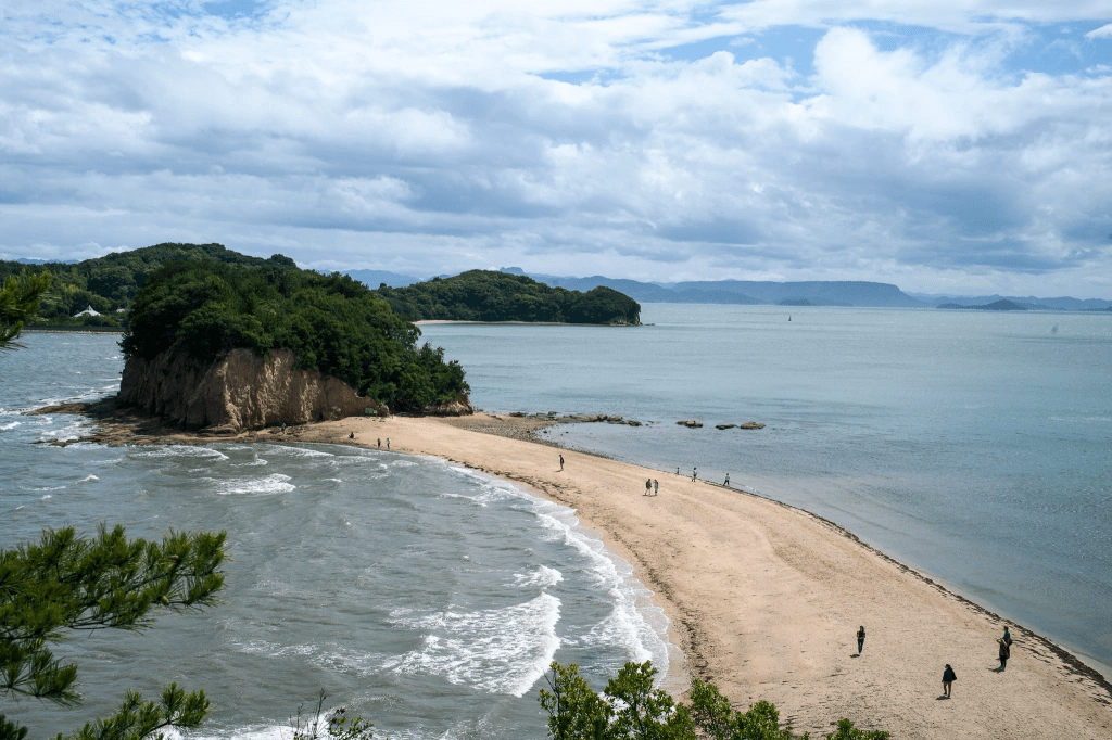 岛屿,日本发音Shima。小豆岛就念做Shiaodou Shima。濑户内海众多岛屿中,小豆西玛大约是最大的一个了。岛上有沙滩、梯田、橄榄园等众多景点,虽然公交全岛可达,但苦于班次较少,因此一天绝对逛不过来。于是只选了“天使之路”一处。