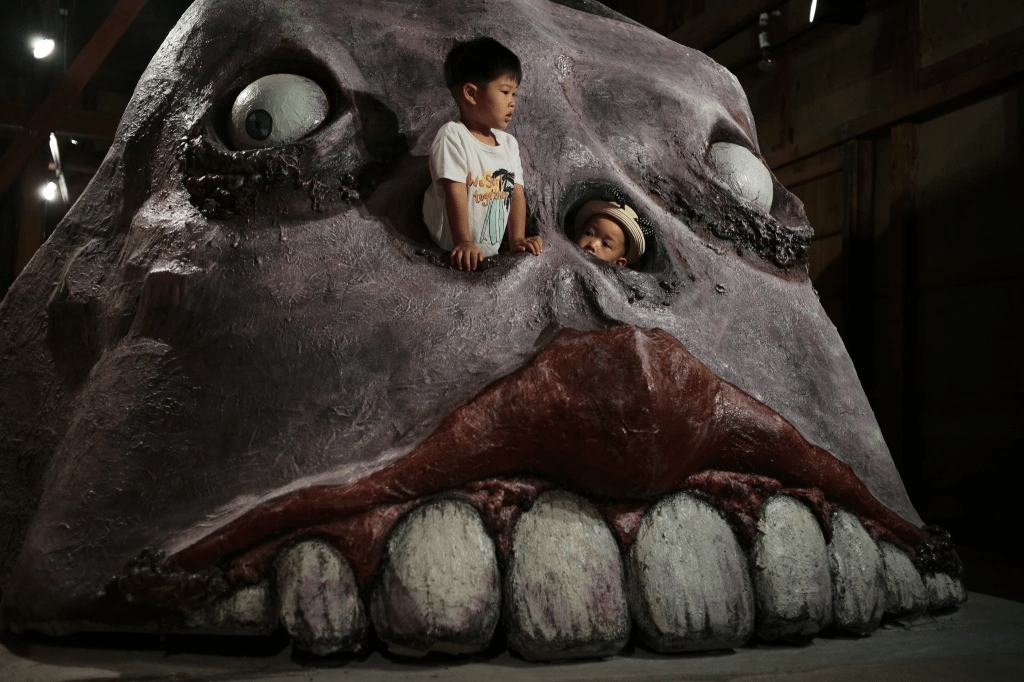 直岛是濑户内海艺术节的重镇,可惜我们没时间细细参观,下船便直奔“红南瓜”去。藤本壮介的“和果子”也在附近,同样是互动性很强的雕塑。