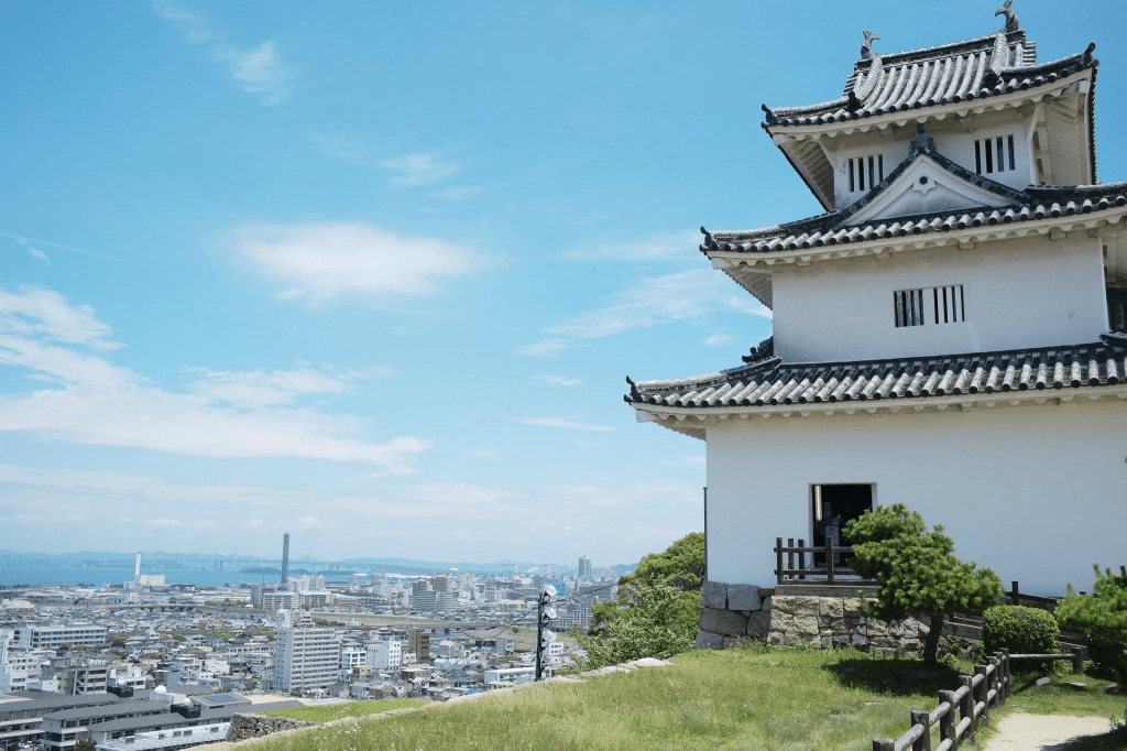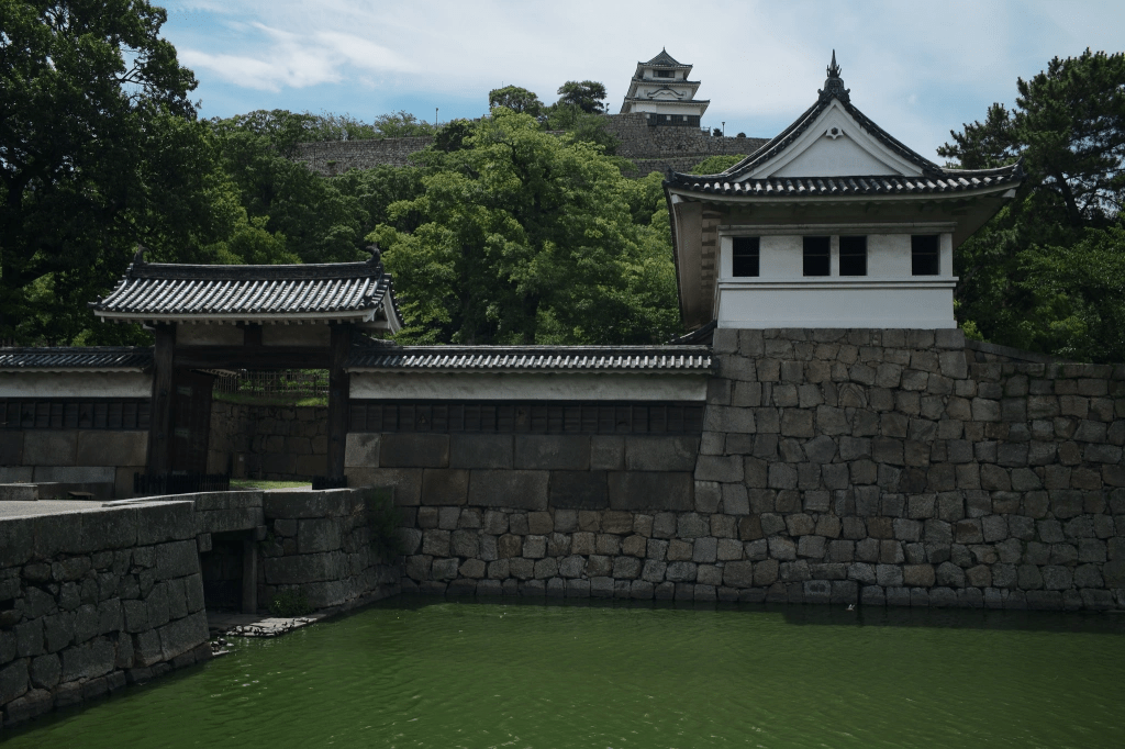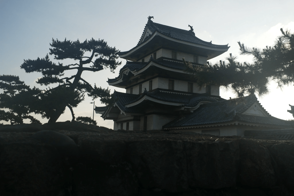 今天的主要目的地是丸龟城。丸龟和高松并为亲驹时代赞岐十七万三千石的两大城堡,在江户时代“一国一城”制令下被废,再后来赞岐国被一拆为二,山崎氏重修居城,便大致有了今天的模样。山城因易守难攻,在战国早期一度很流行。到了安土桃山时代,逐渐被平城取代,丸龟城也因此以稀为贵。日本全国一百座城池中,丸龟高度居第一。