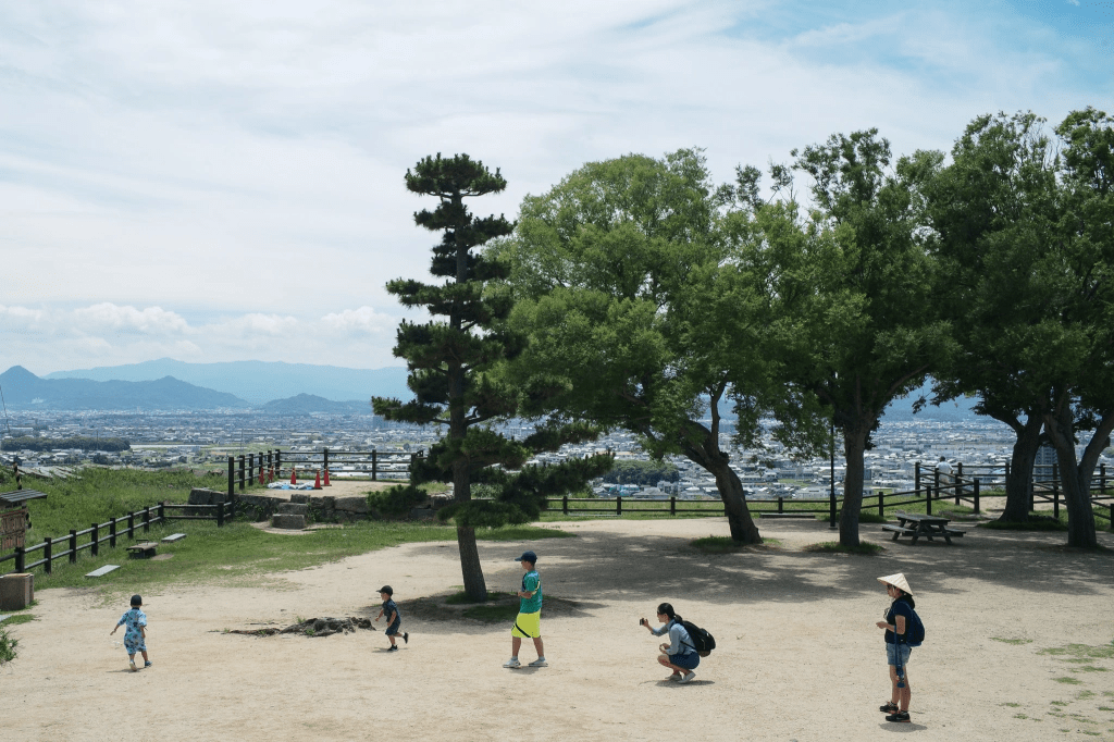 要让孩童们安安静静拍张照片着实不容易,“看爸爸头上张角了”已经不足以骗取其注意力了。从山下沿斜坡往上爬,依次是三之丸、二之丸、本丸。有了金刀比罗宫的经历,丸龟城好像小土丘一样,攀登不在话下。