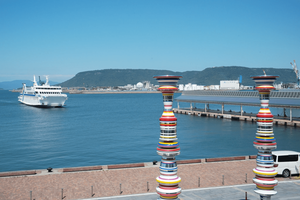 回到高松时间尚早,天气亦好,当即决定坐船去看草间弥生的大南瓜去!