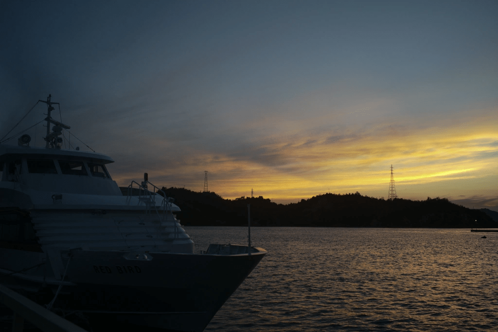 前往Nao Shima的渡轮竟然是崭新的,干净而空旷的甲板几乎可以赤脚行走。当天海面波澜不兴,完全不见去小豆岛时的惊涛骇浪。