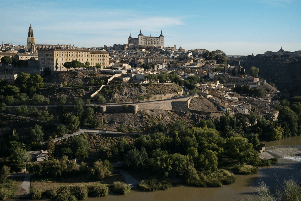 虽然也有大批的平地面,西班牙的城市却宁可建在山上,这都是受到当年罗马人的影响。也许是当地的蛮族太凶悍,不好对付吧。其中Toledo的城址最有安全保障,三面环水,居高临下。