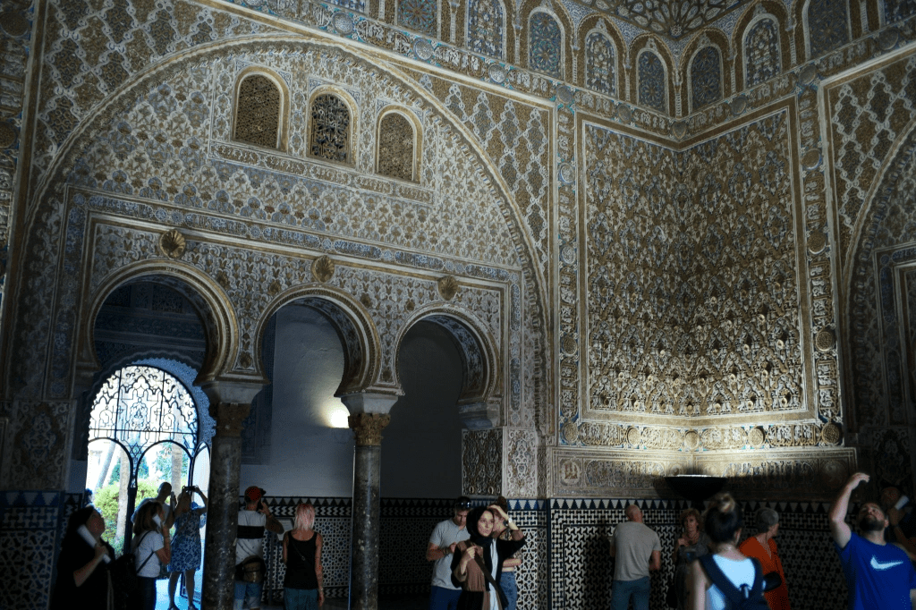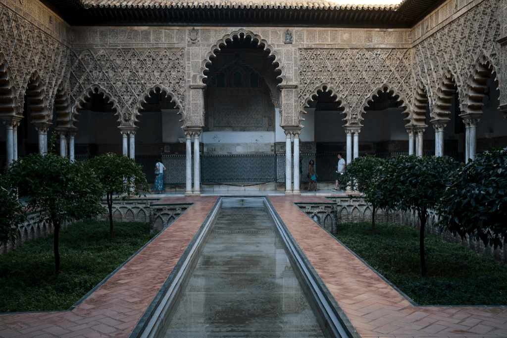 阿罕布拉宫的遗憾,在塞维利亚得到了补偿。塞维利亚老城市中心的塞维利亚王宫,虽然由阿拉贡王国(基督教)的佩德罗一世修建,却大量采用了伊斯兰风格。据称,佩德罗与Nasrid王朝保持良好外交关系,修建王宫的工匠,甚至就是建造阿罕布拉宫同一批人。