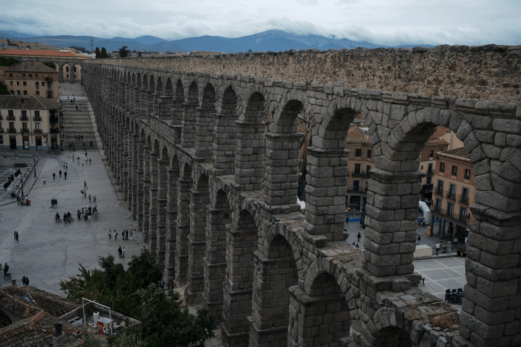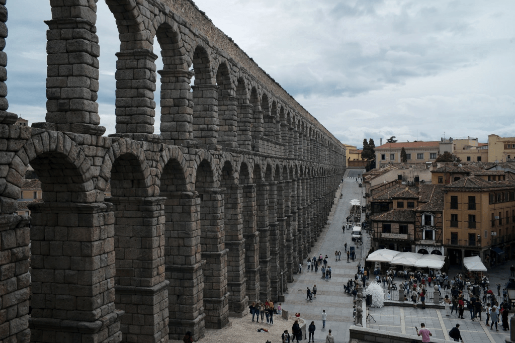 遍布西班牙的罗马遗迹,最壮观的当属塞戈利亚的水渠。虽然只剩下两个山坡之间的数百米小段,但高度确实无以伦比。巨大的拱形石结构将水渠支撑两千年屹立不倒,再想到数十公里的水渠,靠维持着细微的落差引导水流翻山越岭,真是不得不佩服罗马人的工艺。欧洲人对罗马的态度错综复杂。一方面钦佩罗马的伟大并以忍不住罗马的后人自居,另一方面又不得不正视被其凯尔特、高卢祖先被罗马征服奴役的历史。之前在法国游历时看到,以罗马皇帝自视的拿破仑,其侄子拿破仑三世却将自己的面目雕刻在高卢人领袖身上。多么的纠结啊!