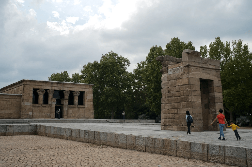 欣赏下更古老的埃及什么也可以了。这是怎么回事呢?原来埃及修水坝西班牙参与援助。结果水坝要淹没一座神庙,西班牙人看着可惜。埃及人说:这种庙我们多的是,你要喜欢你尽管拿去好了。于是,西班牙人如获至宝,将神庙拆分成一块块石头,拆开标记后拿回去重新组装起来。于是在马德里西北部的高地上就有了这么一座埃及庙。